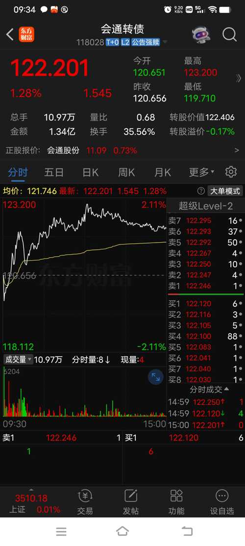 7月11日上证指数冲高回落,收盘3510点,上涨1点,全市场成交17366亿元,2960只股票上涨,2206只下跌;68只股票涨停,13只跌停。转债市场成交694亿元,308只转债上涨,162只下跌。 周五在券商、银行等权重股带领下,上证指数一度冲到3555点,但很快随着券商、银行的回落竹篮打水一场空。没有个股跟涨的行情是不持久的,不过当天成交额达到1.74万亿,牛市的气息渐浓,重整旗鼓后我觉得有...