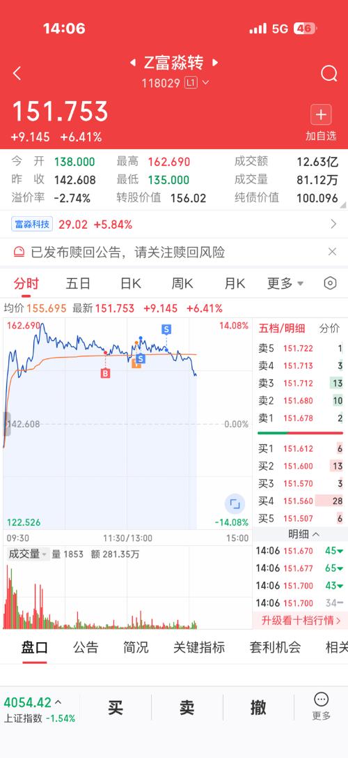 $富淼转债(SH118029)$来简单的解释几句为啥昨天隔夜转股,因为有些小伙伴没有转股权限,那么想少亏一点,只有尾盘被迫割掉,在正股还算撑的情况下,债被迫下杀打出了3+的溢价,这种情况就是值得一赌的,我记得上一个例子好像是尚荣还是啥来着,也是类似的情况,以后如果有类似的情况,还是可以玩,然后反过来就是如果你没有权限的,两点五十以后尽量别碰,求稳就是过了两点半尽量别碰,因为坑的就是没权限的,我强杀...