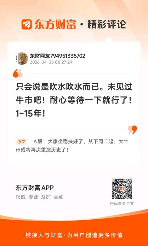 下辈子//@东财网友794951335702:只会说是吹水吹水而已。未见过牛市吧!耐心等待一下就行了!1~15年!