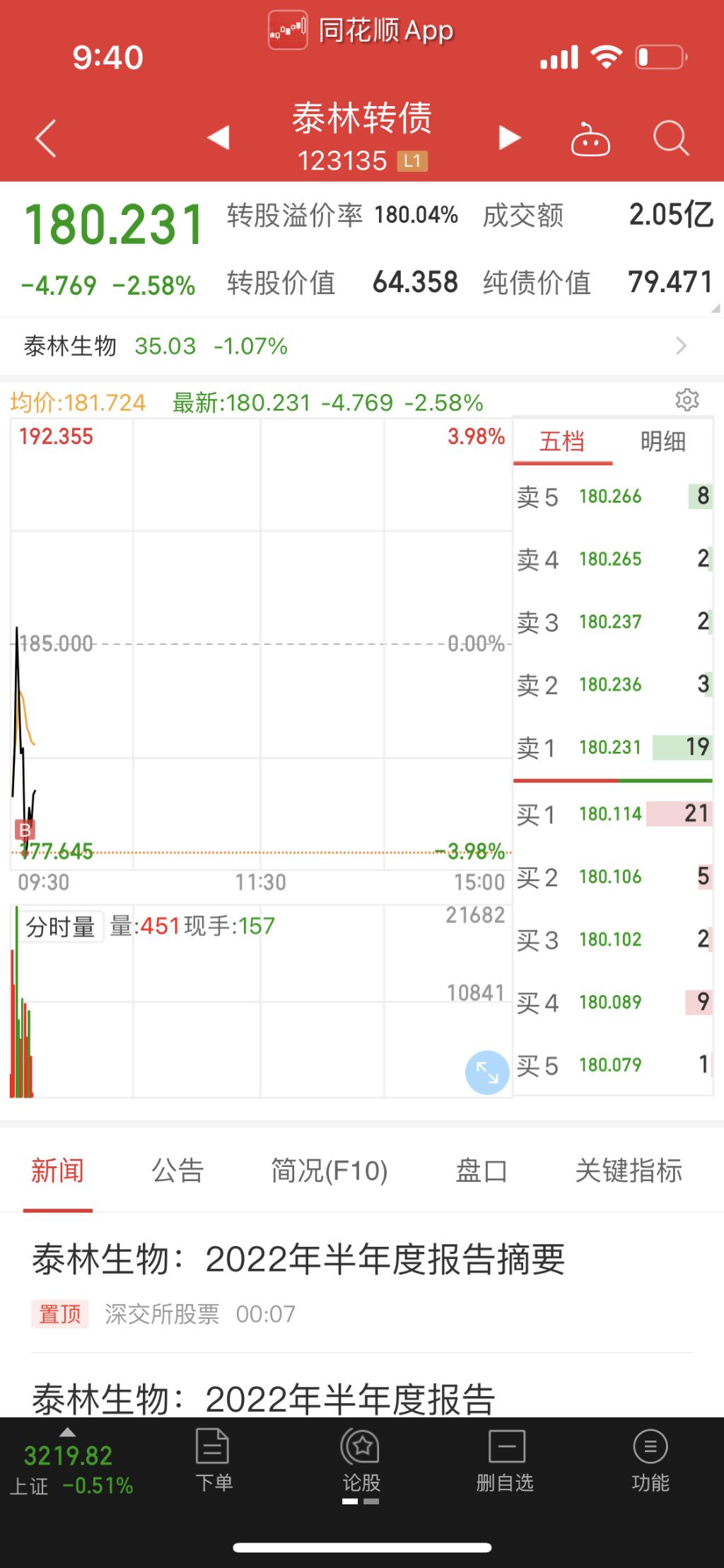 什么都搞不懂就玩转债,公司连续一个月天天发公告,公司完全按照证券法规来的,当属公司100元发行的转债,现在100元加利息赎回?有什么不对?发行可转债就是给公司短期借款用的,人家每年付利息,至于现在价格,是股民之间相互炒作,不是公司炒高的,是股民相互炒高的,你们参与了买卖,都是其中的推手,债价走成这样是大盘连连下跌造成,看看那些没强赎的,还不是一样连续下跌,是形势没碰得好。要是大盘连连上涨,又是一个...