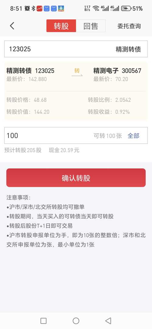 $精测转债(SZ123025)$转股会不会亏,没转过,看不懂