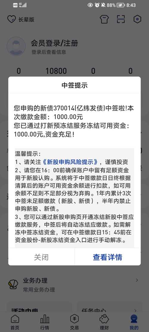 25号尾盘135买了10张精测转债,坏消息,没有创业板权限也不够10万,好消息,26号中新债了