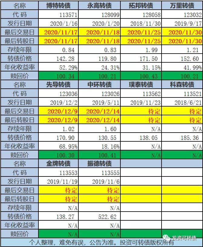 第二高价振德转债赎回,健康办公领军企业乐歌转债上市——可转债市场观察(20201109)