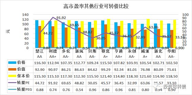 导语:其他51个行业中,还有哪些高市盈率可转债?如何评价选择?哪些可转债可选择为十大金转债主选?哪些可选择为备选?每日投资金句不要以价格决定是否购买股票、而是要取决于这个企业的价值。——沃伦巴菲特接《2021年十大金转债之其他行业(中市盈率类)》一文,我们继续来进行其他行业的高市盈率金转债。高市盈率类精选按照转股市盈率(转股PE)在大于30倍的可转债筛选,获得11只可转债,数据比较见下图。楚江转...