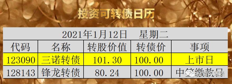 导语:血糖仪龙头三诺生物发行的三诺转债上市,其正股估值和转债预期首日定位如何?泛微转债赎回,投资者如何应对?明泰铝业发布业绩公告,正股和可转债影响如何?当前已经发布业绩预增的可转债有哪些?每日投资金句不要相信各种理论。多少世纪以前,人们听到公鸡叫后太阳升起,于是认为太阳之所以升起是由于公鸡打鸣。今天,鸡叫如故。但是每天为解释股市上涨的原因及华尔街产生影响的新论点,却总让人困惑不已。——彼得.林奇...