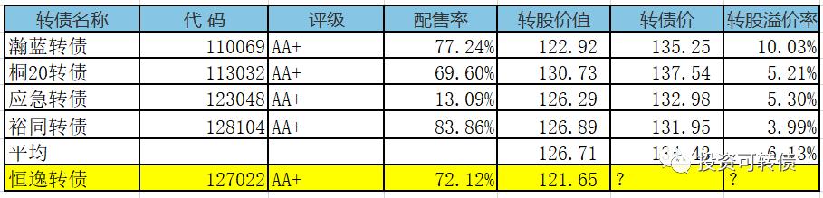 恒逸转债,申购代码070703,交易代码127022。整体评价:黄金级,内在价值112.4元,按当前情况预计每签可以盈利160元。基本信息:AA+,6年期,转股折价1.29%,每张持有到期本息为108.9元(税后本息为107.12元)。发行规模20亿元,每股配售0.5432元,最低185股可确保中一张,股权登记日为10月15日。正股恒逸石化(000703),化纤行业,公司是全球领先的精对苯...