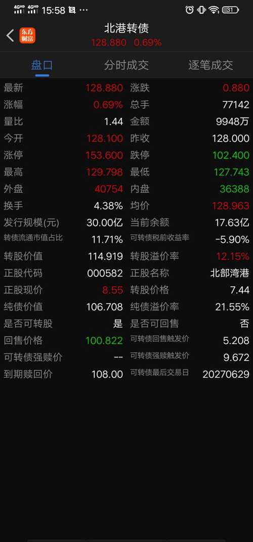 以$北港转债(127039)$为例介绍可转债的基本特性