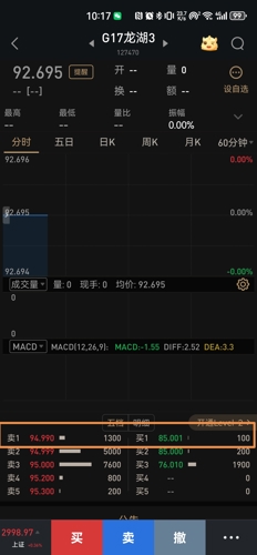 G17龙湖3的盘口价差接近10元,今天还没有成交,这时候从天而降的一笔卖出就能让龙湖集团的债上热门证券。$G17龙湖3(SH127470)$$龙湖集团(HK|00960)$