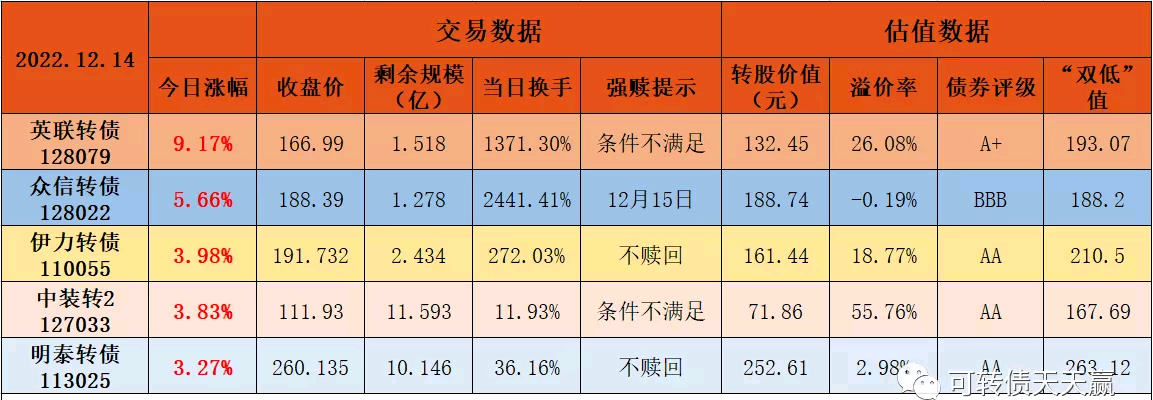 众信转债、江丰转债、太阳转债已经停止交易,最后转股日分别为20日、21日、22日。如果持有的投资者忘记转股操作将亏损24%~42%不等。当前有赎回相关信息的可转债列表见下。对于已经实施赎回的可转债,投资者应注意在最后交易日之前卖出或赎回登记日之前转股,避免被低价赎回导致亏损。注:表中列出所有已经宣布赎回转债,新增不赎回消息转债,近期不赎回转债,不包含远期不赎回转债。标黄部分为新赎回消息转债。赎回影...