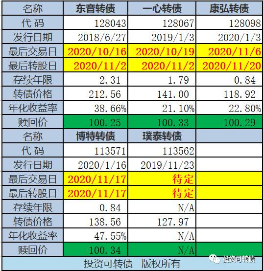 可转债待赎回:10月26日更新