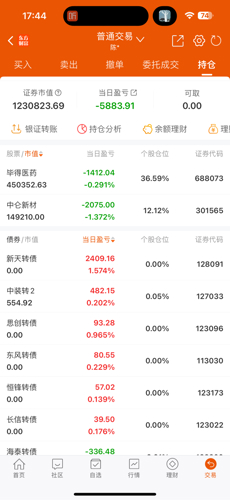 $天路转债(SH110060)$$精达转债(SH110074)$$中装转债(SZ128060)$今日总结第一笔交易一定要找好位置再进,胜算大些也省时间。今日收益+1.05%142元
