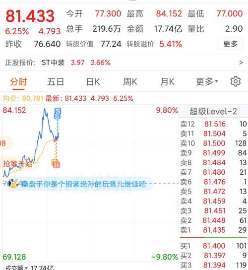 $ST中装(SZ002822)$的主力老是想不劳而获,每次都想等$中装转债(SZ128060)$拉升,然后轻松拉升或者出货,而债卷每次天量拉升十几二十个点,回头发现正股烂泥扶不上墙,最多五个点,又只能苦哈哈的回踩等正股,结果正股不死不活的一看债卷回踩,好家伙,比债卷回踩的还快一些!