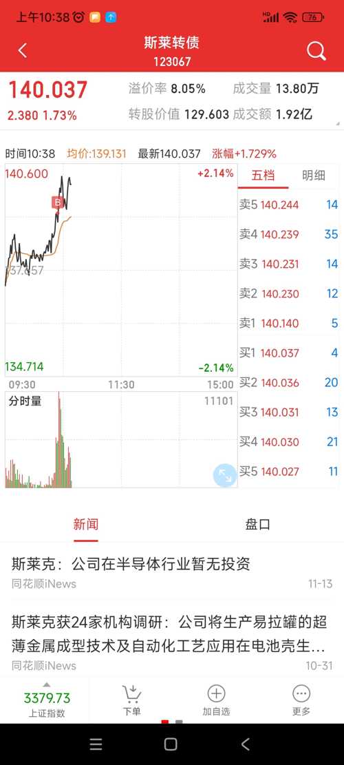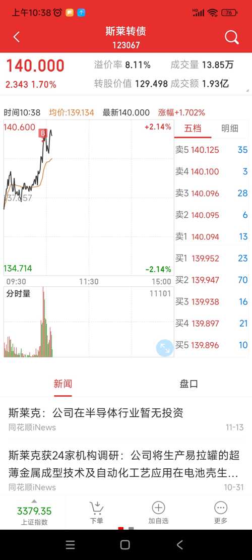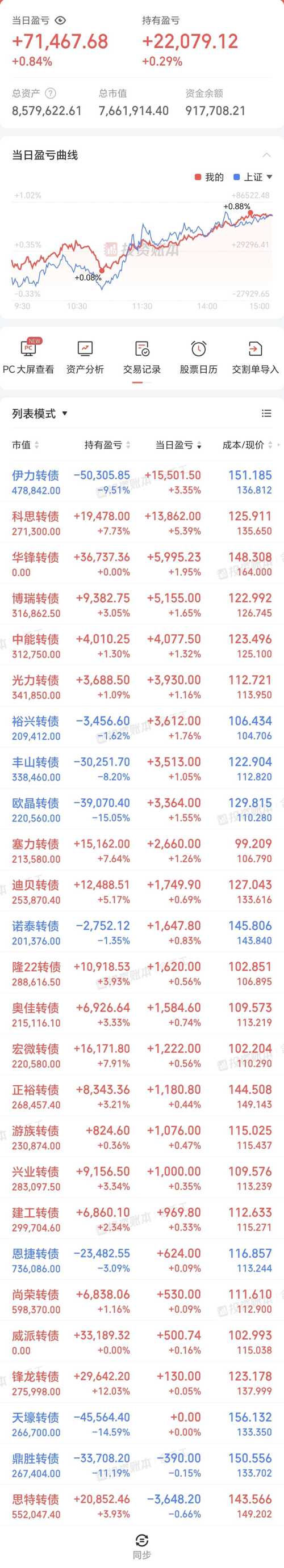 尾盘买进的,有两个点的负溢价,只要周二、三这两天正股走的不太差(或者是在今天的集合竞价前就选择了转股,那就是周一),那就已经胜人家一筹了!