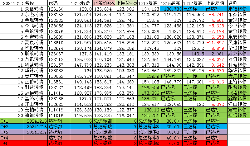 尾盘可转债(短线),即每日尾盘14:40后,通过选债选择一批可转债标的,考察标的一周内大于3%收益的概率(五个交易日,以最高价计算)。盘中采用其他方式公布,本栏目不便及时发帖。为了计算方便,盘后以当日收盘价作为计算初始数据。#豆包概念股大火,行情能持续多久?##个人养老金制度推开至全国##消费赛道持续活跃,投资机会来了?#选债标的见文后表格,仅供研究参考,以此投资风险自负!各处栏目号均以黄金阶梯...