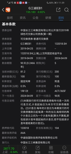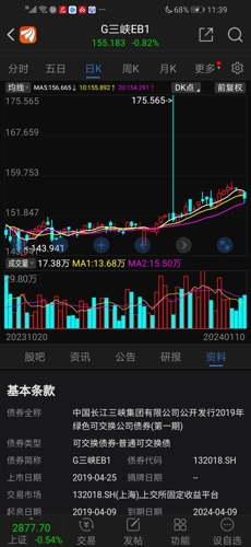 $长江电力(SH600900)$$G三峡EB1(SH132018)$132018可转债在2024年4月9号到期。正好还有90天。既然快到期兑付就没啥子任何价值的!肯定暴跌了!现在157元。130元可以抄底!有不服的出来走走!它的换股价格是15.1元价格很低!哈哈哈哈哈哈哈哈哈哈哈哈好!