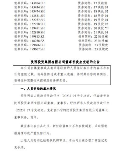公告 143104:陕西投资集团有限公司董事长发生变动的公告