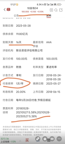 $18金地04(SH143658)$请教个问题。按这上面的描述我五月12日100元买了。过16天他就给连本带利给我钱了利息是,5.38%假如我要买一张的话16天后他就给还给我105.38元刨去20%的税5.38*0.8=4.30416天后他就给还给我104.304元我的理解对吗?