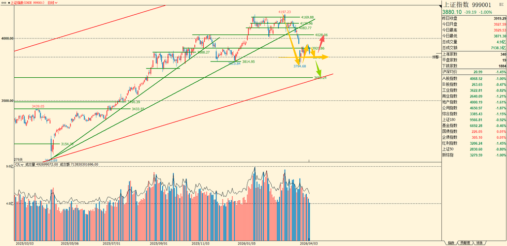 $上证指数(SH000001)$0403期 今日大盘小幅高开,接着一路向下,收盘跌幅39个点,破了3920的支撑位。 接下来最坏的打算;当前的下跌引领新一轮的主跌浪,也就是3685的区域。节后关注3849位置的支撑,这个支撑是判断接下来行情能否守住的关键!