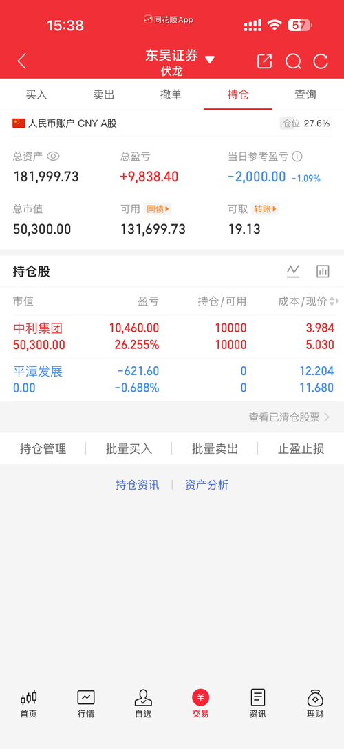 4.3:10万实盘,出:平潭发展,减:中利集团(-2000) 简单说说今天的持仓: 平潭发展不及预期,跌破5日线止损出来规避下,等企稳再进场了 持有 中利集团:今天没能突破站稳5.30的压力位,所以逢高减了小半仓出来,剩下的不破10日线就继续持股待涨了 以上内容仅供学习交流,不构成投资建议,不作为投资决策的依据,据此操作,风险自担,股市有风险,投资需谨慎!$中利集团(SZ002309)$