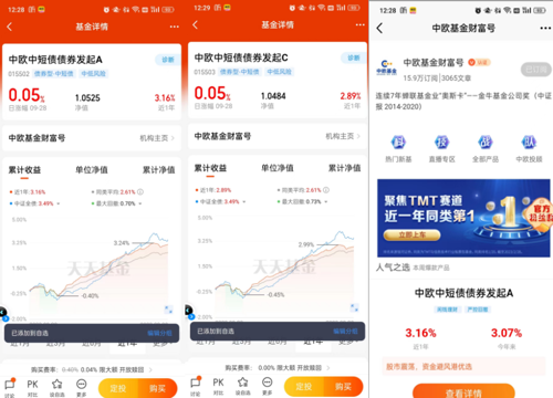 我猜$中欧中短债债券发起A$ ,节后第一个交易日收蛋0.03%