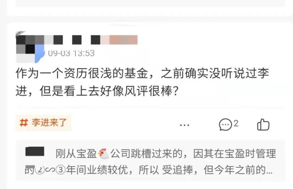 黄衫女侠文财商侠客行出品景顺长城基金8月31日发了一则公告:景顺长城创新科技混合增聘基金经理李进。顿时,景顺长城科技创新基金的讨论区炸开了锅,景象是这样的:还有这样的:具体来说,就是一批李进的粉丝找到了组织,为“进哥”重出江湖摇旗呐喊,此举也引得一众原本不了解李进的基民,在讨论区观摩了一番之后得出结论:还有一些粉丝无私地给新人们普及关于进哥哥的常识,比如:李进究竟是谁?他的评论区为何能赢得基民的温...