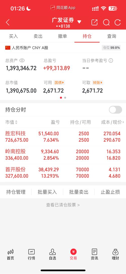 #【有奖】晒持仓 赢好礼!# #炒股日记##实盘记录#持有$胜宏科技(SZ300476)$$20首开01(SH175200)$$岭南控股(SZ000524)$