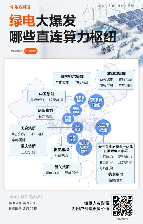 3月24日,绿色电力概念高开高走掀起涨停潮,截至收盘,板块大涨4.75%,涨幅居概念板块前列。个股方面,节能风电、雅博股份、粤电力A、金开新能、华银电力等十余股涨停。 消息面上,国家数据局局长刘烈宏3月23日在中国发展高层论坛2026年年会上表示,下一步将会同相关部门大力推进算电协同工程,确保枢纽节点新建算力设施绿电应用占比达到80%以上,最大程度发挥绿色电力的支撑作用。 而事实上,早在2024年...