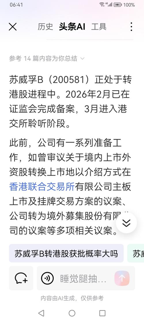 $苏威孚B(SZ200581)$昨天有四百手两单,今天上午有一单,有大户进入,看来离转港股越来越近了。
