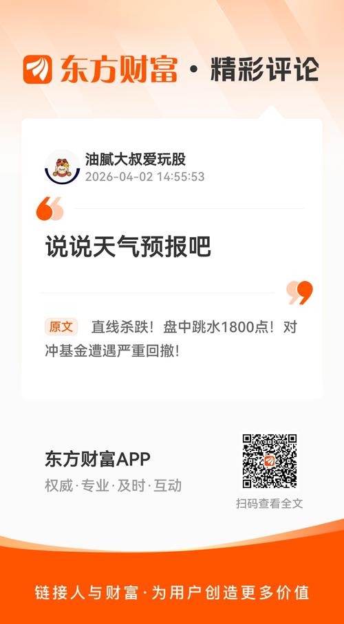 说说天气预报吧 我在《直线杀跌!盘中跳水1800点!对冲基金遭遇严重回撤!》的评论获得了大家的关注。