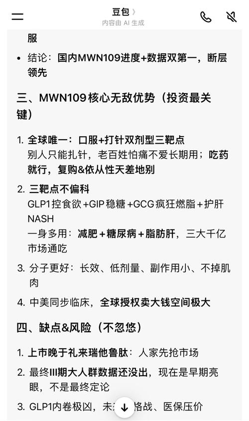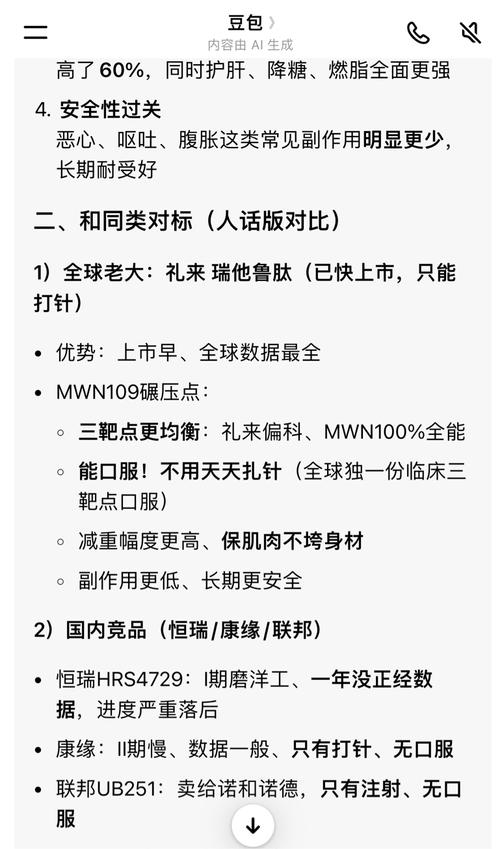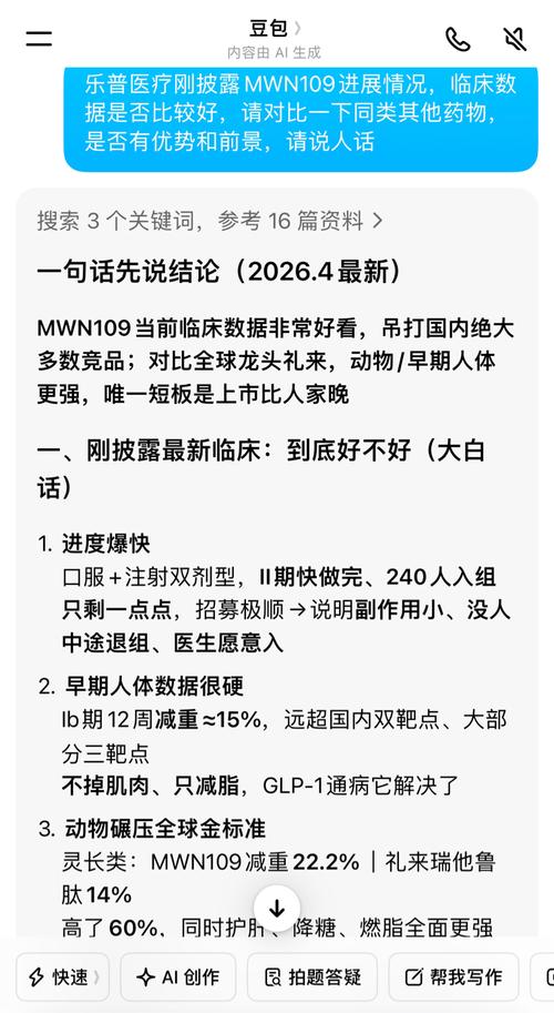 $乐普医疗(SZ300003)$MWN109当前临床数据非常好看,吊打国内绝大多数竞品;对比全球龙头礼来,动物/早期人体更强,唯一短板是上市比人家晚。不懂就向AI学习,仅作参考。