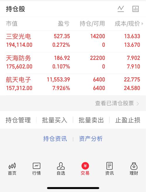 今天稳稳收红,持仓的三只各有亮点,主打一个稳健。 $三安光电(SH600703)$今天走势挺稳,微涨小赚,作为持仓里的压舱石,稳稳贡献收益,没出幺蛾子。 $天海防务(SZ300008)$也小幅飘红,虽然涨幅不大,但胜在走势平稳,没拖后腿。 最给力的还是$航天电子(SH600879)$,盈利相当亮眼,带着跑了一波,这波确实选对了,肉吃得香。 整体看下来,结构很健康,既有稳健的标的,也有能冲的核心。接...