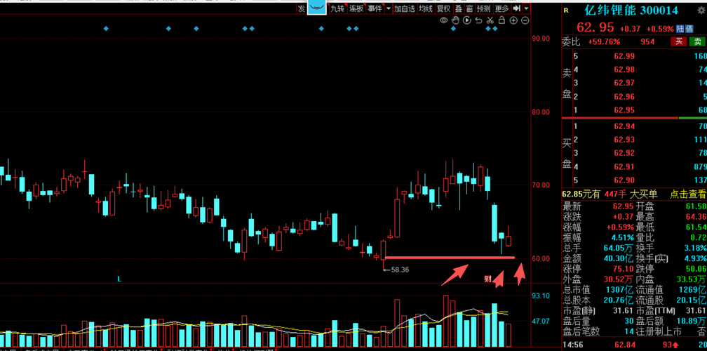 $亿纬锂能(SZ300014)$明天到60