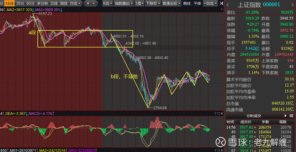 #收盘点评##社区牛人计划# 1、指数情况:半强活跃状态 上证大盘收跌0.74%,深成指收跌1.6%,创业板收跌2.31%,市场中位数收跌1.74%,涨幅10%以40家,跌幅10%以上的家数12家,两市成交1.84万亿,今日资金成交再次下跌到2万亿,市场情绪为半强活跃状态。 操作条件:15分钟二买的信号27日上午10:15分形成成立; 止损条件:短线止损上移:3850点;中线止损点:3794点; ...