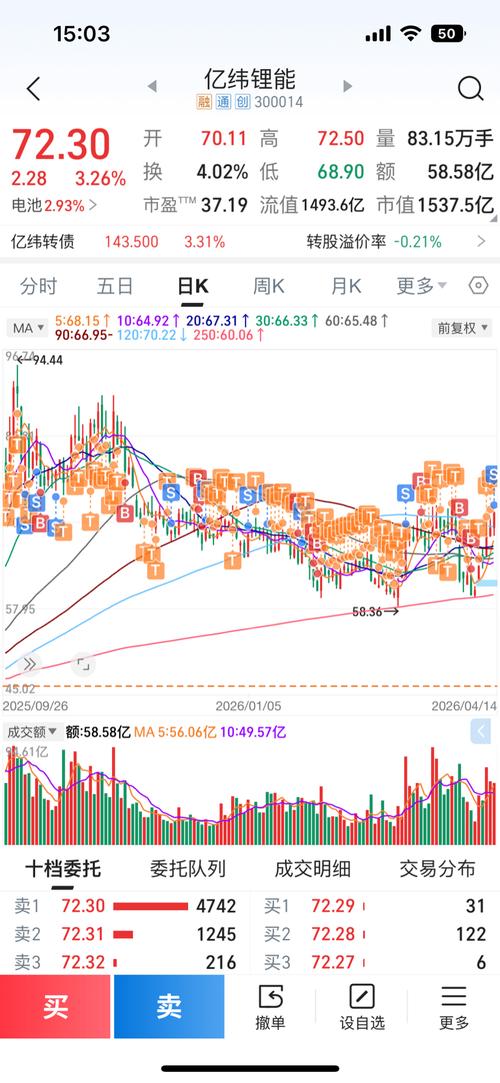 $亿纬锂能(SZ300014)$持仓137天了,今天先T一下下,成本价67