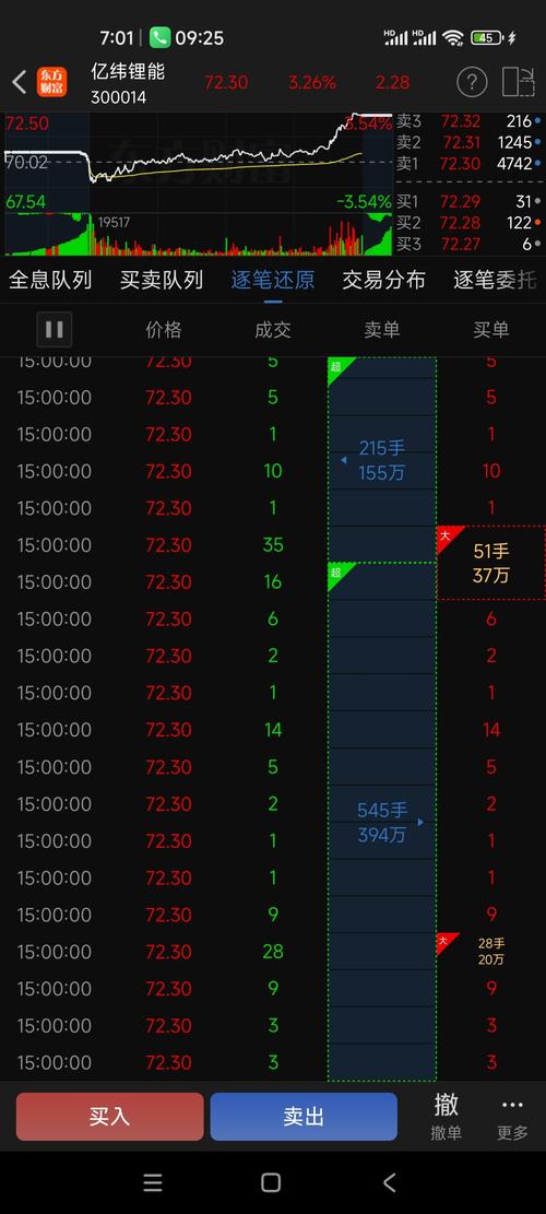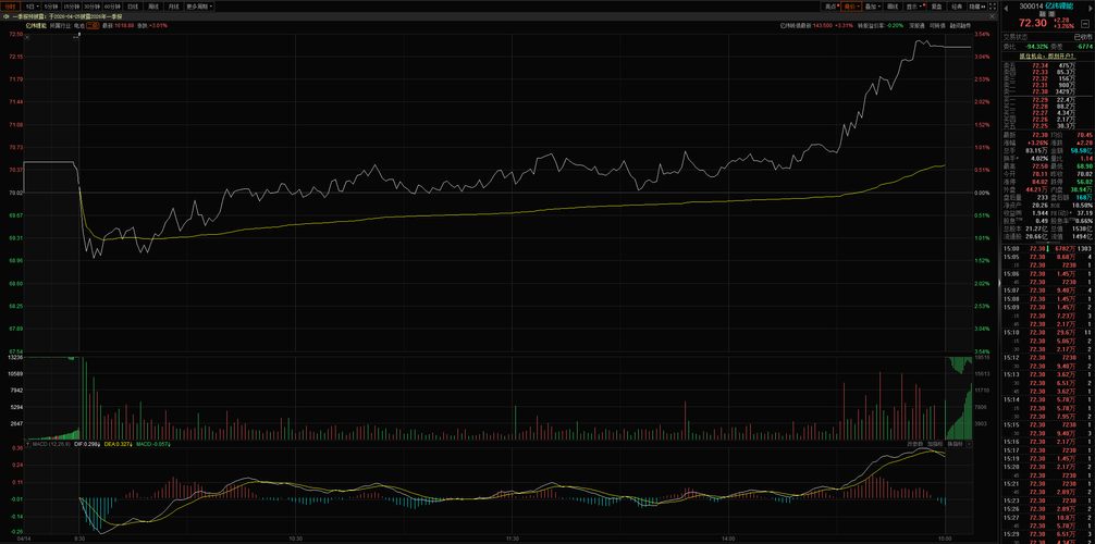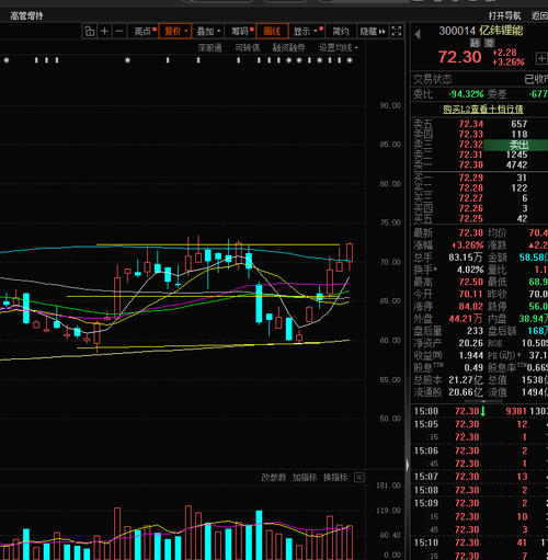 $亿纬锂能(SZ300014)$ 亿纬锂能今天这走势简直稳得一批!虽然低开,但一直往上冲,现在市场上全是看好它的声音,机构资金抢着进场,筹码都往手里攥,散户都在乖乖交筹码。业绩拐点已经实锤,储能、固态电池这些硬科技赛道它都占全了,根本没理由不涨。我说了这票就是明牌强趋势,拿住的后面绝对是一路向上,吃肉没跑!今天收盘72.30元,大涨3.26%,几乎收在全天最高点。技术面上看,今天收了一根大阳线,股...