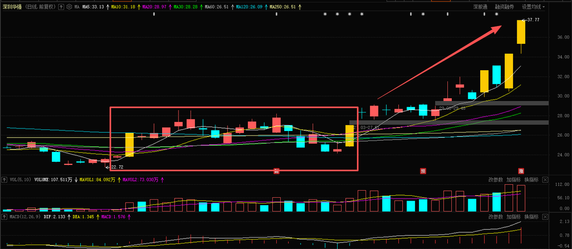 周二早谈《深圳华强》深圳华强持续涨停,今天还能板吗? $深圳华强(SZ000062)$深圳华强:目前整体走势就是一个盘整区突破后的持续行情,从量价配合上来看,应该还有持续性,毕竟从3月9日这波启动以来都还是阳线多阴线少的格局,说明资金进场还是比较积极的。这里虽然连续两天涨停,但是成交量并没有明显放大,还是保持在一个正常换手的状态。从均线系统看,5日线,10日线等多条均线也都出现了多头排列的走势,说...
