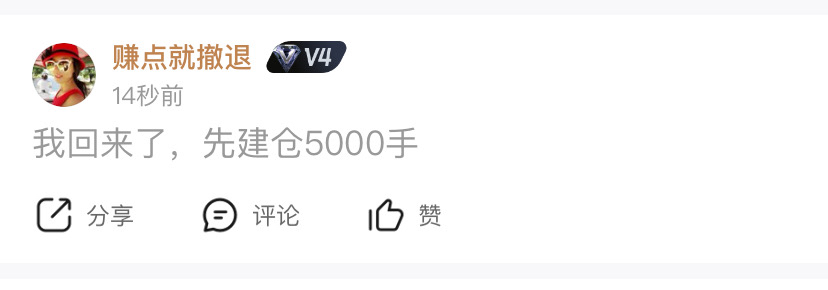 买在恐慌时,内心不恐慌。前天低点买了一些,小赚一万。今天回调,哪怕破4元也不必恐慌,持续买入就对了。