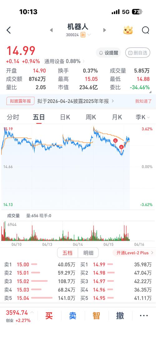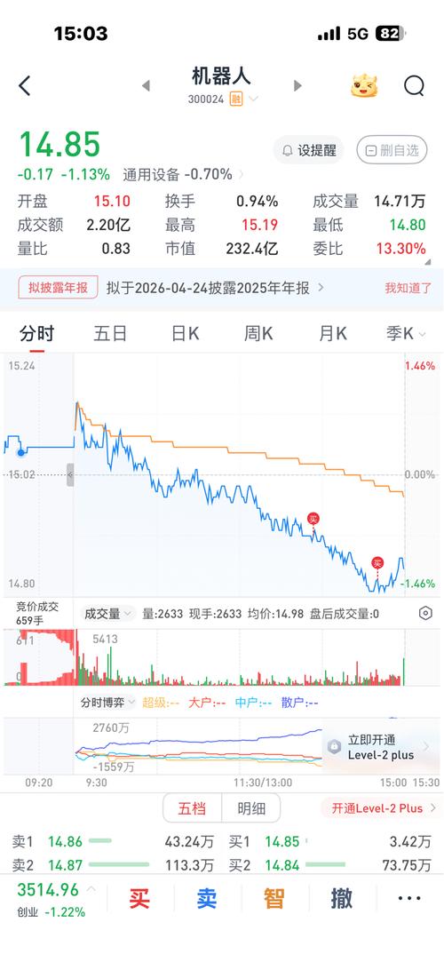 $机器人(SZ300024)$15.5就卖,涨点儿吧