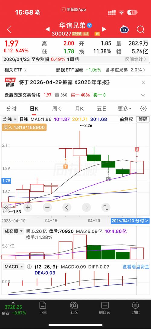 $华谊兄弟(SZ300027)$ 一、核心事实:4月23日发生了什么 4月23日当天,华谊兄弟盘中大幅拉涨,最终收盘报1.97元,涨幅达6.49%,成交额5.26亿元,换手率高达11.38%,全天振幅达11.89%。 但当天一个更重磅的事件不容忽视——华谊兄弟被申请破产重整。4月23日,企查查显示华谊兄弟新增一则破产审查案件信息,申请人为北京泰睿飞克科技有限公司,经办法院为浙江省金华市中级人民法院...