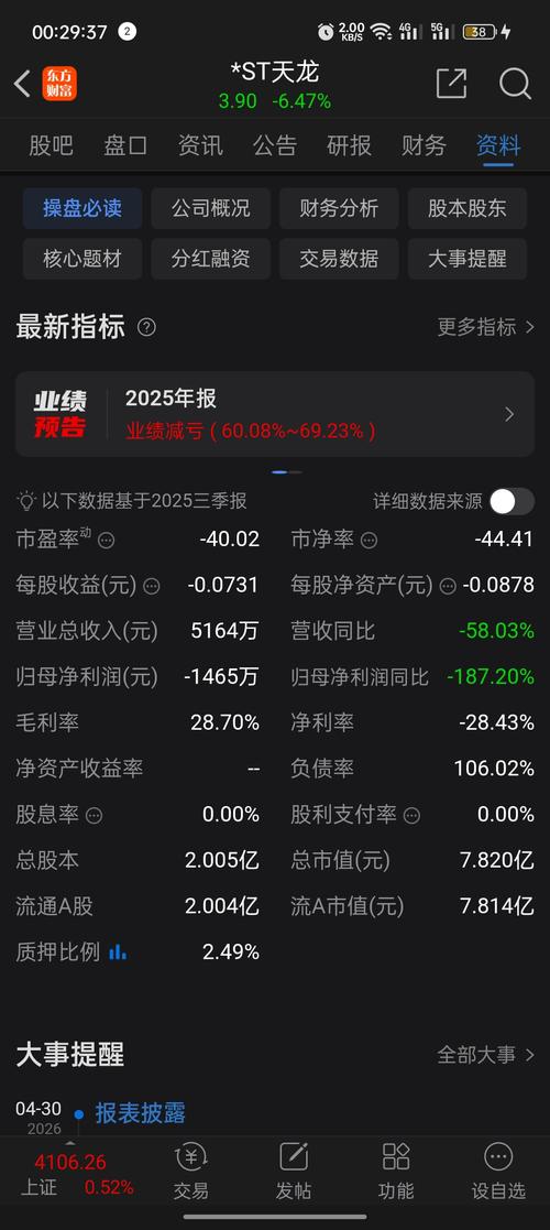 $*ST天龙(SZ300029)$ 负债率106%,资不抵债了,难怪一直跌
