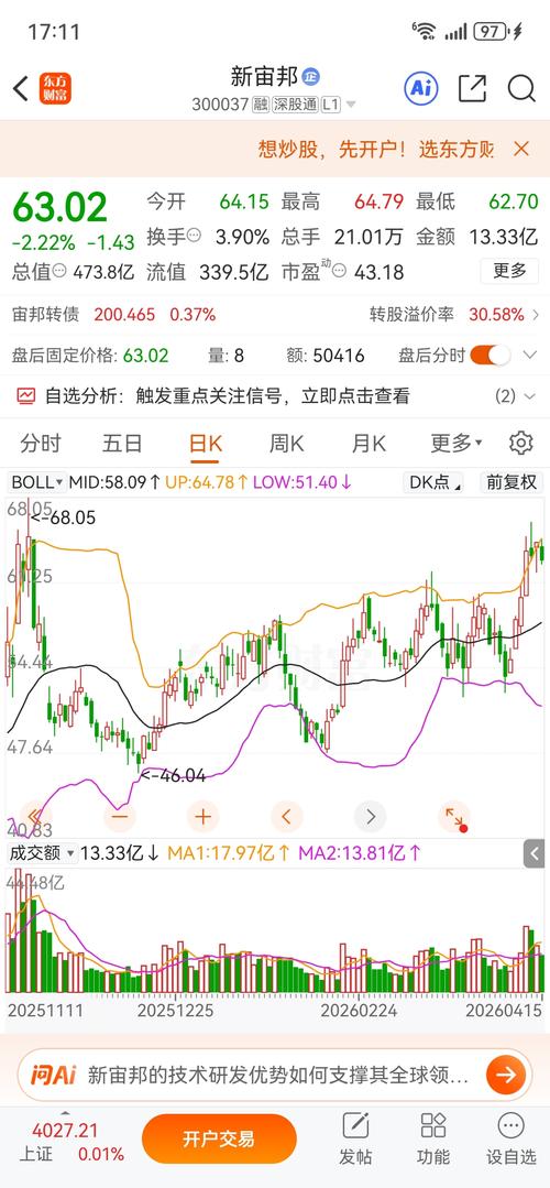 $新宙邦(SZ300037)$看技术面,回落中下轨再买吧