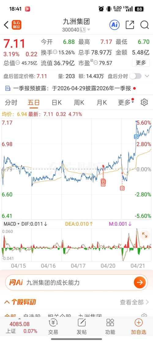 $九洲集团(SZ300040)$这么好的流通盘,主力最爱!