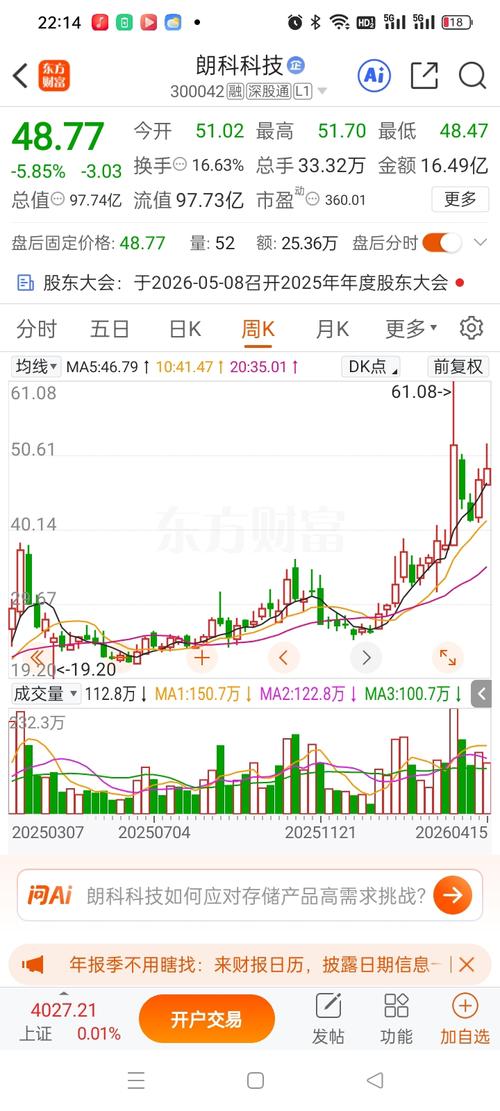 $朗科科技(SZ300042)$闪储个股无论是美股还是A股都是走升趋势中,无论周K月K都是上升,支撑它们趋势无疑存储涨价逻辑,即是业绩爆棚,今晚的佰维存储一季度同比增长1500%,明天佰维存储无疑涨停板见。照这趋势朗科科技一季度同比应有500%。