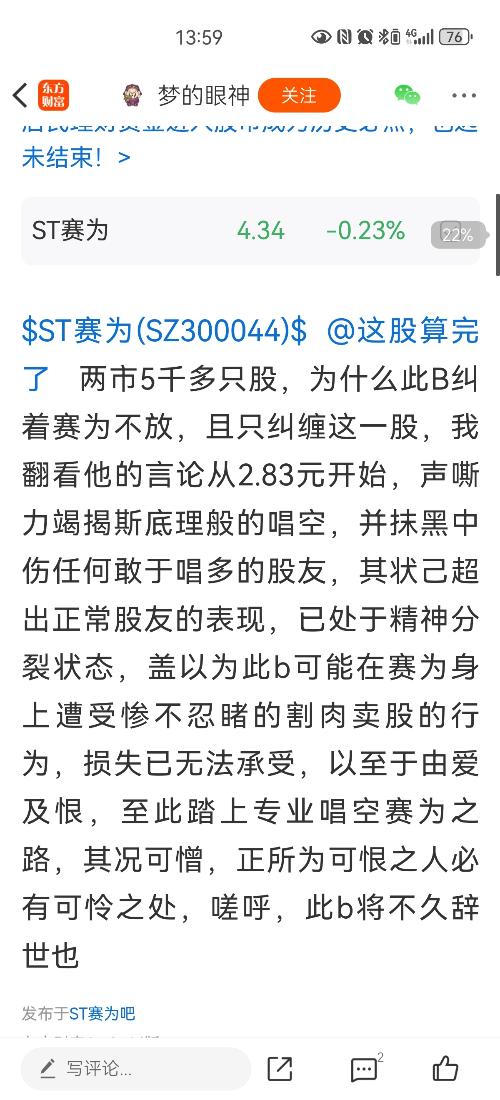 $ST赛为(SZ300044)$ 还是我的股票评论区清静。