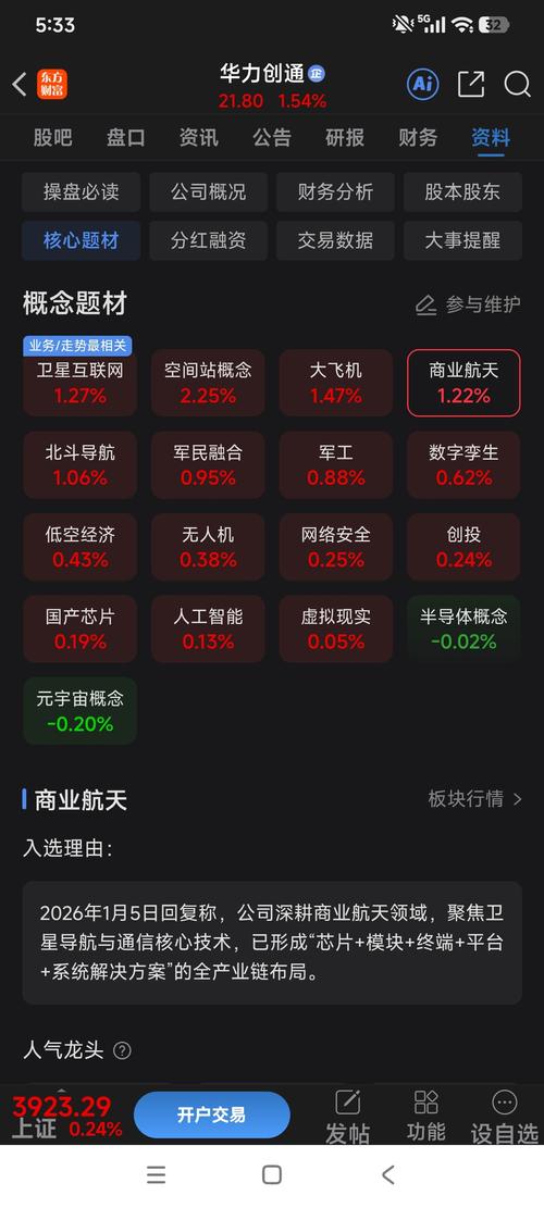$华力创通(SZ300045)$【概念细分】华力创通(300045)新归类于6g概念-6G芯片细分方向。 6g概念-6G芯片细分方向指的是:6G芯片是支撑下一代移动通信网络的核心计算与通信单元,主要包括基带芯片、射频芯片、通信SoC及AI与通信融合芯片等方向。相关企业围绕6G高频通信、智能信号处理和算力通信融合开展前瞻性研究,为未来6G网络和终端设备提供底层算力与通信能力支持。 根据华力创通披露的...