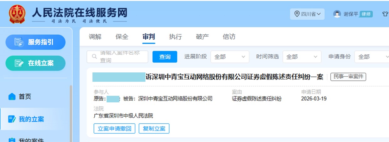 中青宝股票索赔案投资者一审胜诉,根据相关司法解释,凡是2020年3月27日至2023年4月26日期间买入且在3023年4月26日收盘时还持有受投的投资者,可蹬公号“众维515”进行登记。