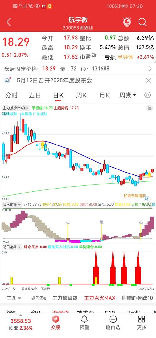 $航宇微(SZ300053)$周一出现主力点火信号(看黄色k线),而且趋势反转,刚刚起步