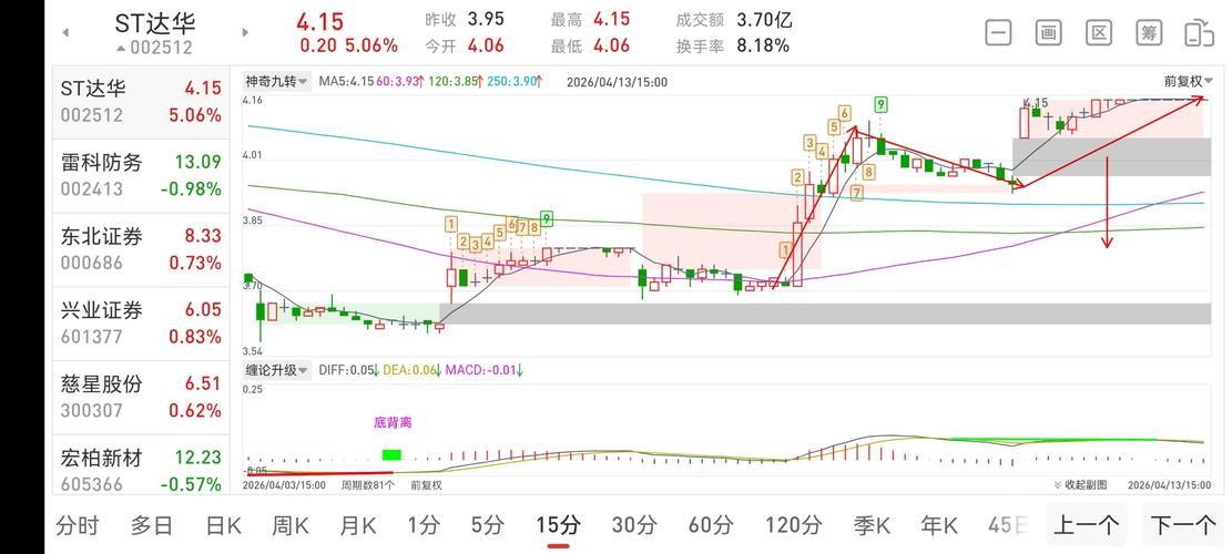 $上证指数(SH000001)$$航宇微(SZ300053)$$中超控股(SZ002471)$ 大盘15分钟走势结构图! 根据以上15分钟走势图来看:指数突破上行的60移动平均线,结合下方红绿柱来判断:5浪上涨结束迹象!5浪上涨没有盖过3浪顶,说明上涨弱势,强势情况下,就算再走一个延长7浪也不会盖过5浪顶!还得回踩上行的60移动平均线后,再依托上行的60移动平均线开启下一轮上涨行情,只不过是把回踩...