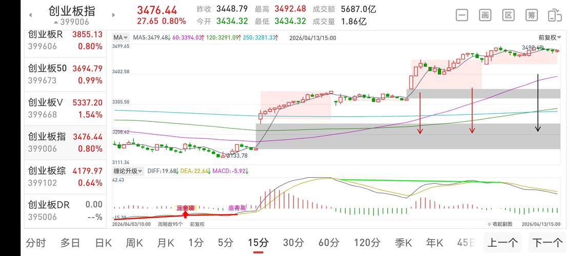 $上证指数(SH000001)$$航宇微(SZ300053)$$中超控股(SZ002471)$ 大盘15分钟走势结构图! 根据以上15分钟走势图来看:指数突破上行的60移动平均线,结合下方红绿柱来判断:5浪上涨结束迹象!5浪上涨没有盖过3浪顶,说明上涨弱势,强势情况下,就算再走一个延长7浪也不会盖过5浪顶!还得回踩上行的60移动平均线后,再依托上行的60移动平均线开启下一轮上涨行情,只不过是把回踩...