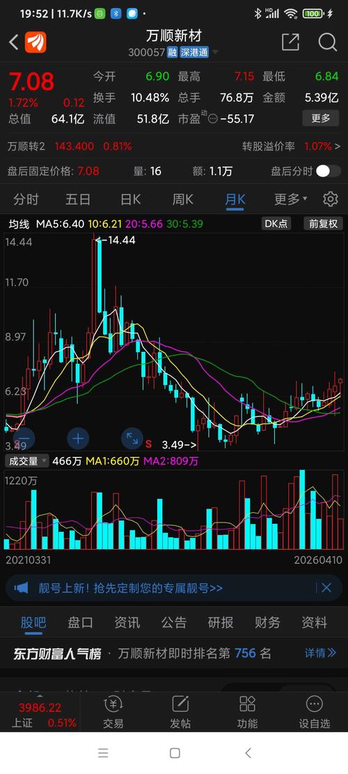 $万顺新材(SZ300057)$出水才见两腿泥!就看你是虫是龙了